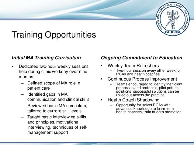 Redesign Expands Medical Assistant Roles by Lisel Blash, Catherine Dower, average of 3.5 patients per provider per hour. As a result of their success, institution for the Certified Clinical Medical Assistant ... Return Doc
