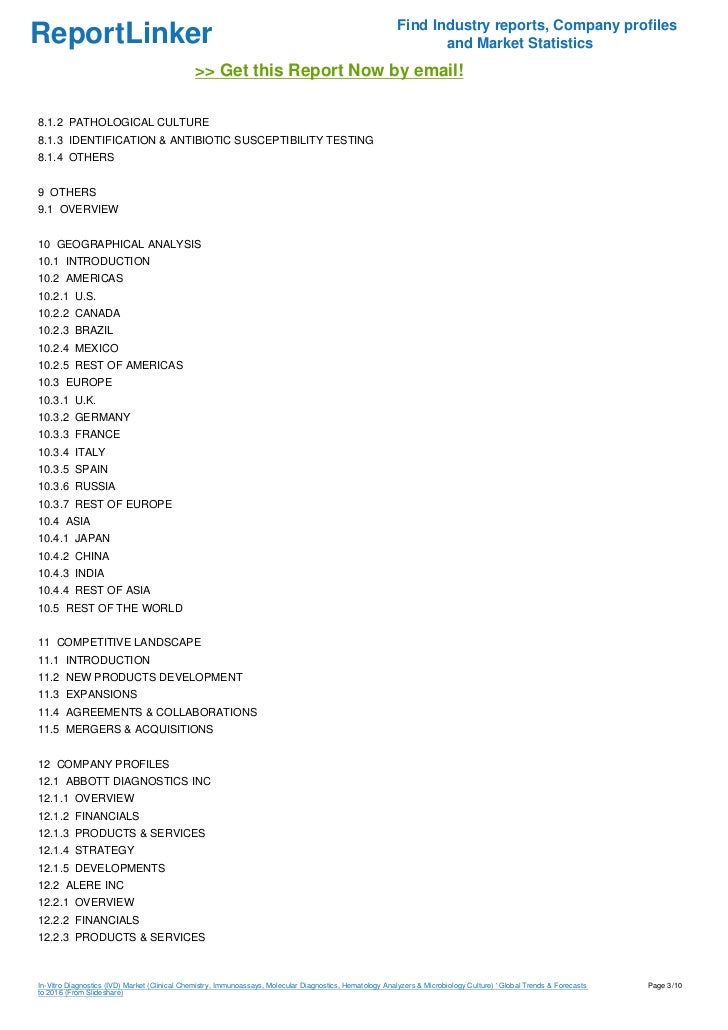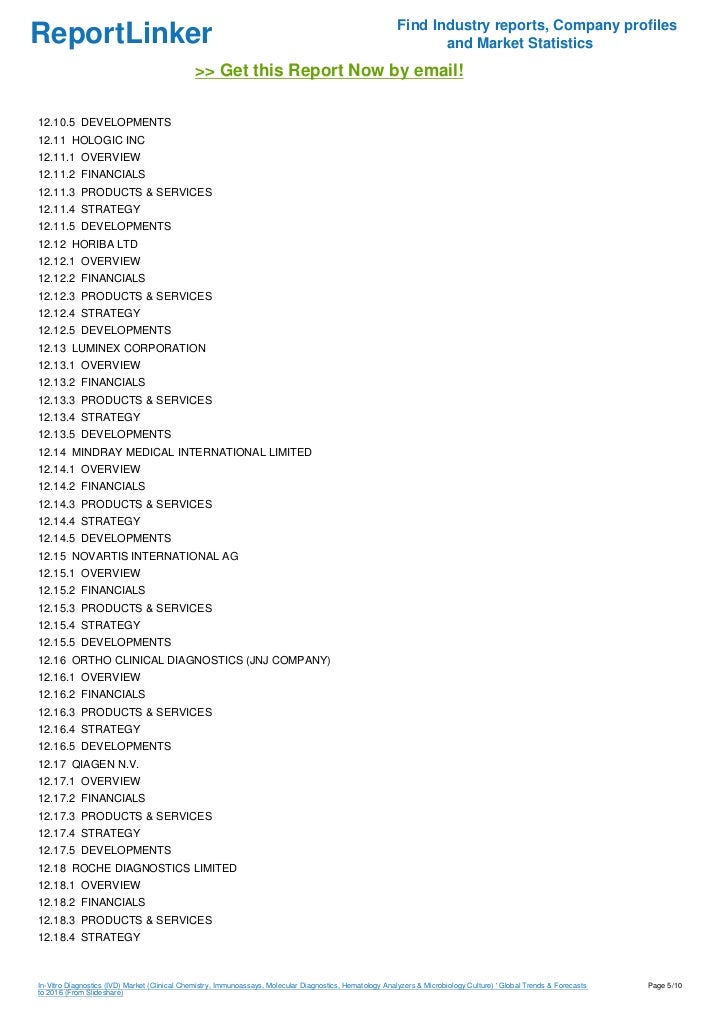 Trends and outlook for clinical diagnostics testing Clinical diagnostics tests are carried out in hospital worldwide, through analysis of human blood and other tissue samples. These in vitro around the world. These products are developed specifically to diagnostic ... Access Content